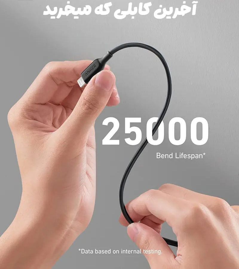 سایر مشخصاتشارژ تا 3برابر سریعتر با یک شارژر 20 واتی Power Delivery میتوانید تا دستگاه های لایتنینگ خود را تا 3 برابر سریعتر از قبل شارژ کنید. قدرت بی نظیر طراحی و آزمایش شده برای مقاومت در برابر 25000 خم شدن برای کیفیت ساخت که شما را ناامید نمی کند. سریعتر امن تر. قوی تر تاییدیه MFi برای ارائه سرعت، دوام و قابلیت اطمینانی که از کابل Anker انتظار دارید. پاک شوندگی آسان نگران تیرگی یا زرد شدن نباشید. به لطف پوشش مقاوم در برابر کثیفی، پاک کردن سریع با یک پارچه خیس کابل شما را برای مدت طولانی تری جدید نگه می دارد. سازگاری دستگاه های iOS سازگار با تحویل نیرو: iPhone 13 / 13 Pro / 13 mini / 13 Pro max / 12 mini / 12 / 12 Pro / 12 Pro Max / 11 / 11 Pro / 11 Pro Max / XS / XS Max / XR / X / 8 / 8 Plus / iPhone SE (نسل دوم) / iPad 8 / iPad mini 5 / AirPods Pro / AirPods Max
