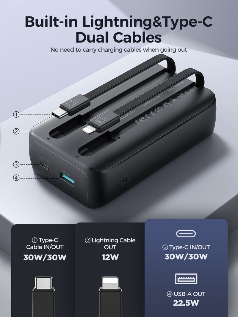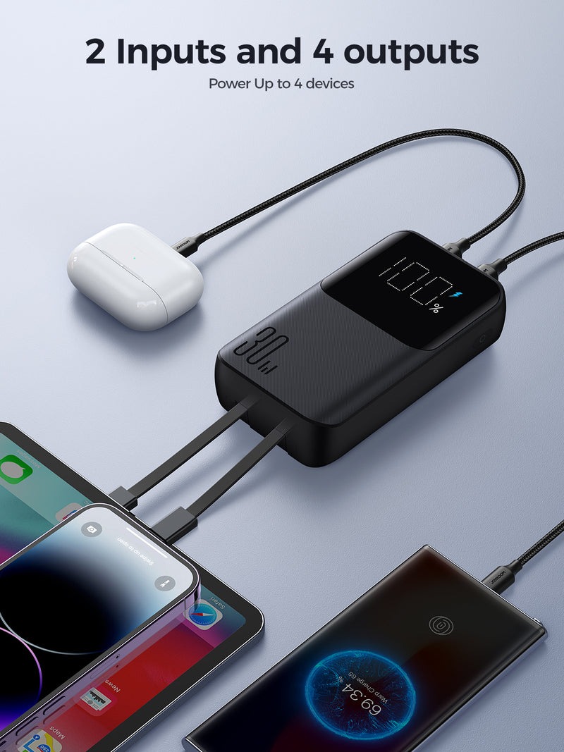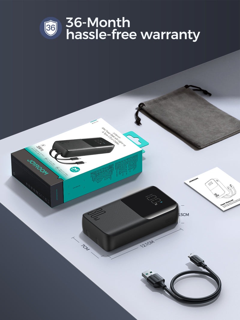 پاوربانک 30 وات دو پورت 20000 جویروم با کابل همراه JOYROOM Mini Power Bank With dual Cables JR-PBC07