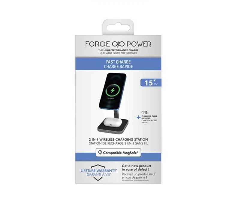 پایه شارژر دو در یک فورس پاور CHARGEUR INDUCTION STAND 15W – مدل FPMSINDSTAND15WW