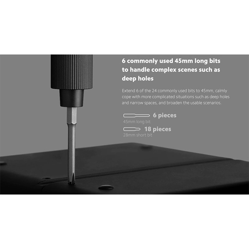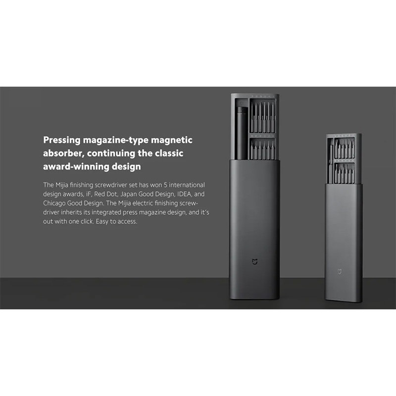 پس از موفقیت نمونه مکانیكی و دستی مجموعه پیچ گوشتی 25 عددی شیائومی میجیا که با همکاری ویها از زیر برندهای شیائومی عرضه شده بود، شیائومی مدل شارژی و برقی نمونه مکانیکی را با همان شکل و شمایل به بازار ارائه نموده است. 6 سری بلند و 18 سری کوتاه با آلیاژهای با دوام در جعبه کشویی این پیچ گوشتی قرار دارد. با یک بار شارژ کامل شما میتوانید 400 پیچ را باز و یا بسته کنید. نمونه جدید پیچ گوشتی شیائومی میجیا چه از نظر کیفی و چه از نظر کمیتی و فاکتورهای سنجشی به راحتی رقبای خودی را که خود تا کنون بیبدیل و بیرقیب بودهاند را پشت سر گذاشته و با قیمتی یکسان، یک سر و گردن بالاتر از رقبا خود را نشان میدهد.