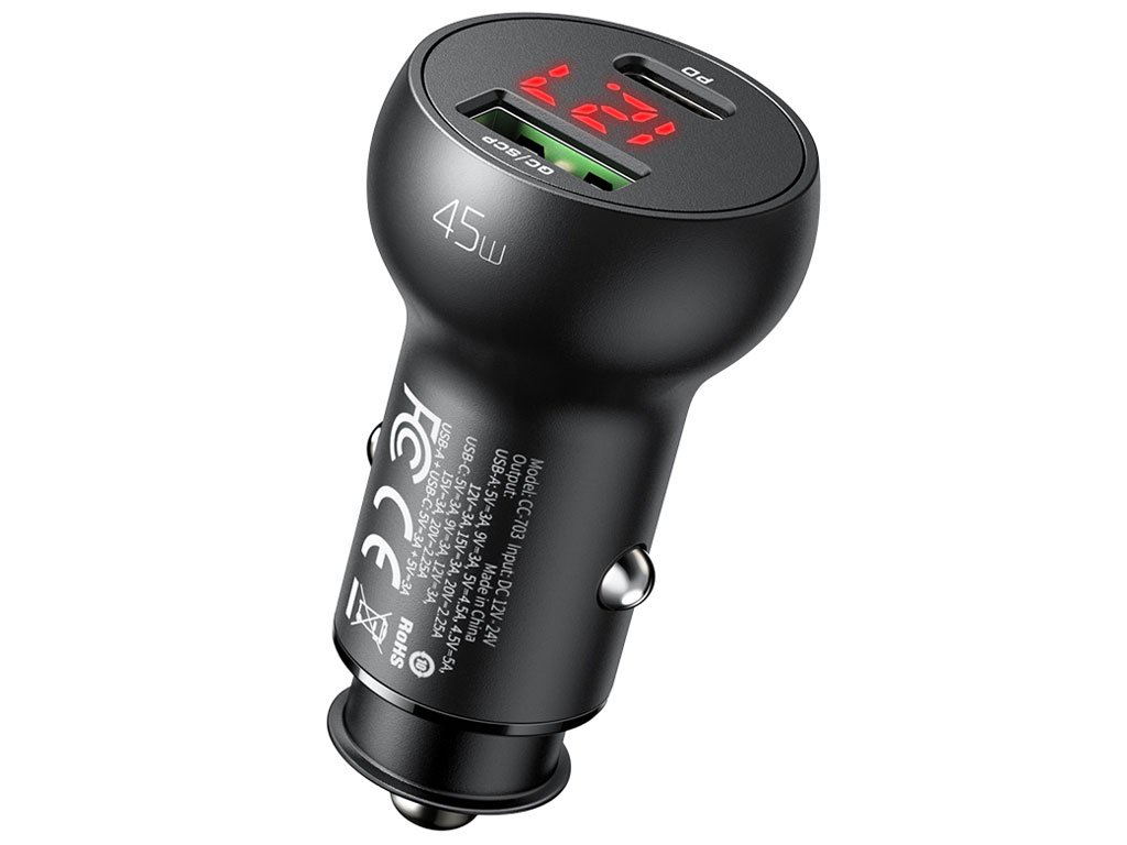 شارژر فندکی خودرو فست‌شارژ مک دودو MCDODO CC-7030 45W USB + Type-C Dual Ports Car Charger