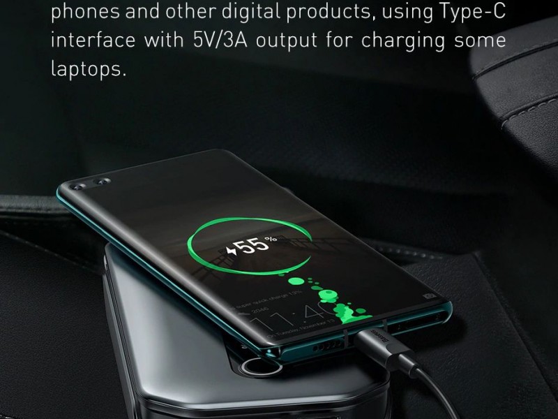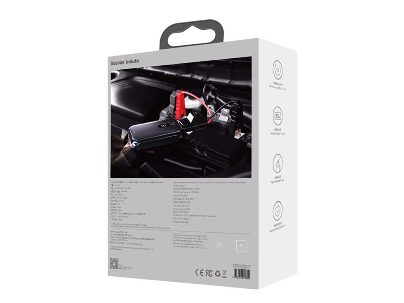 پاور بانک و جامپ استارتر بیسوس Baseus Jump Starter CRJS03-01 همانطور که از اسمش علاوه بر اینکه می تواند کمک حالی برای خودروی شما باشد، می تواند برای تلفن همراه شما نیز یک نجات دهنده باشد. باتری لیتیوم پلیمری این پاوربانک با ظرفیت 12000 میلی آمپر ساعتی خود دارای دو پورت USB و تایپ سی است که توانایی شارژ دستگاه هایی مثل موبایل و تبلت را با توانی معادل 5V/2.4A و 5V/3A دارد. برای شارژ این دستگاه بهتر است از آداپتور 65 وات به بالا و یک کابل استاندارد استفاده کنید. مدت زمان لازم برای کامل شدن باتری این جامپ استارتر بیسوس 1.5 ساعت است و میتواند تا 50 مرتبه بعد از آن استفاده شود.