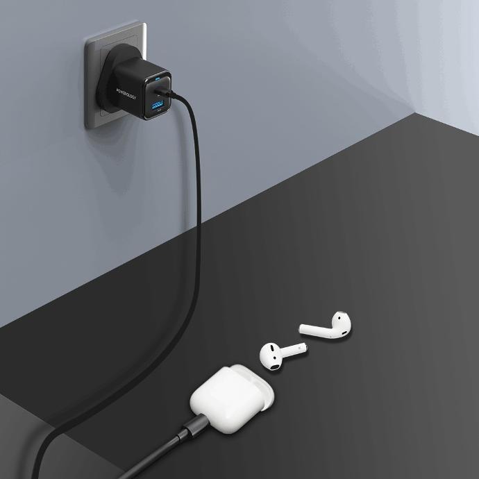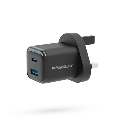 آداپتور شارژ 2 پورت 35 وات با کابل همراه پاورولوژی Powerology Super Compact Quick Charger PWCUQC021