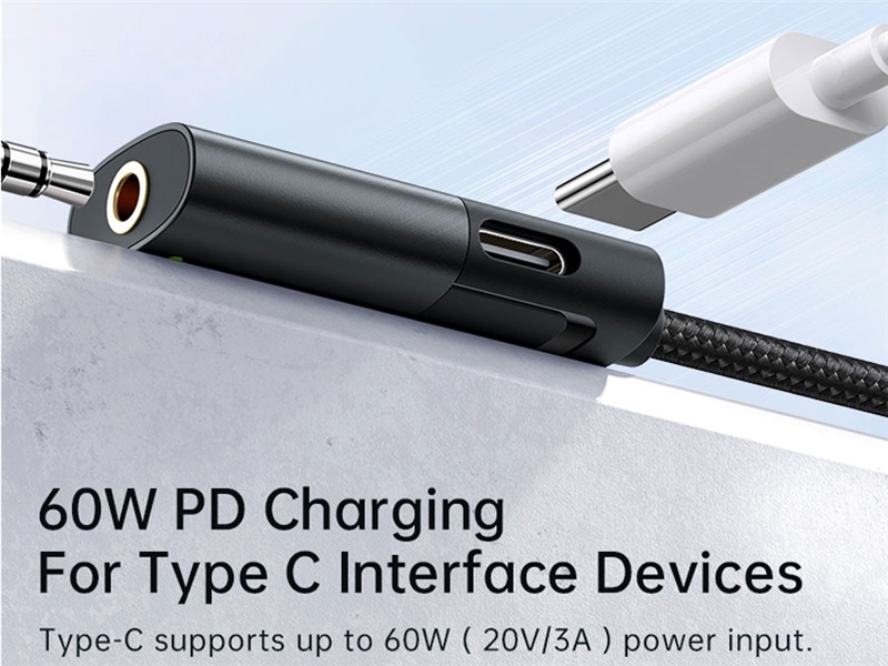 شارژ و همگام سازی صدا دو عملکرد این کابل تبدیل صدا هستند و از سرعت شارژ 20V/3A (max) و توان 60W برخوردار است و فست شارژ بودن یکی از ویژگیهای فنی آن است؛ انتقال صدایی باکیفیت هم در این محصول بسیار مهم است که با پشتیبانی از تکنولوژی HiFi و تراشه داخلی DAC به خوبی صداهای اضافه اطراف را حذف و صدا را با دقت و وضوح بالا منتقل میکند.