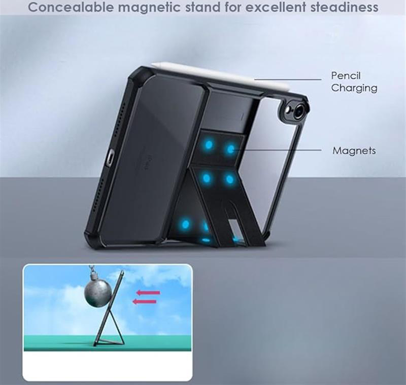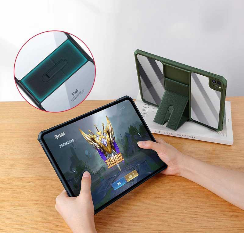 محافظت همیشگی از دستگاه های دیجیتال بخشی جدایی ناپذیر از نگه داری آنهاست که آیپد شما هم از این قاعده مستثناء نیست ، کاور ها باید ضمن حفظ زیبایی آیپد، از آن در برابر خطراتی مانند شوک و ضربه و به خصوص سقوط حفظ کنند. اگر کاوری باشد که طراحی منحصر به فرد آن ترکیبی از زیبایی کاور و خودِ آیپد را نمایان کند و همچنین محافظت ویژه ای از گوشه های آیپد کند قطعا بهترین انتخاب ما خواهد بود. کاور اپیکوی مدل Xundd Stand Holder همان کاوری است که تمامی این نیاز ها را برطرف میکند. در قسمت پشت قاب یک استند با کیفیت ساخته و طراحی شده است تا ضمن محافظت بیشتر بتوانید آن را باز کنید و روی میز کار یا برای طراحی و یا تماشای فیلم از آن استفاده کنید و در زاویه دلخواه آن را قرار دهید. این قاب ساخته شده از بهترین متریال اولیه یعنی PC کاملا شفاف و فشرده و در عین حال انعطاف پذیر است و همچنین TPU که به دلیل خواص نرمی و محافظت بالا در برابر ضربه این کاور را به یک کاور بی نظیر تبدیل میکند. همچنین خاصیت مقاومت بالا در برابر ضربه و خط و خش نیز به جذابیت آن می افزاید. در قسمت های کناری از TPU به شکلی عالی استفاده شده و برش های بسیار دقیق دیده میشود. این برش های دقیق دسترسی به درگاه ها را آسان کرده و قرار گیری دستگاه داخل کاور به بهترین شکل انجام میشود. انعطاف پذیری و نرمی آن ضربه را از دستگاه دور میکند و به آن انتقال نمیدهد بخصوص با توجه به وزن آیپد ها که سقوطشان با شدت بیشتری انجام میشود. همچنین راحتی را در هنگام در دست داشتن آیپد در ساعات طولانی استفاده هدیه میکند. نکته بسیار قابل توجه در خصوص کاور اپیکوی مدل Xundd Stand Holder وجود بامپر هایی است که در 4 گوشه کاور آیپد به شکل برآمده و نرم قرار داده شده اند تا گوشی همراه شما در برابر سقوط آسیب ناپذیر شود. لبه های برجسته کاور کمک میکنند حتی در صورت عدم وجود گلس روی صفحه نمایش از تماس آن با سطح صاف جلوگیری میشود. البته که به شکلی استاندارد طراحی شده و گلس شمارا در صورت استاندارد بودن آن بلند نمیکند. اپیکوی محافظت از لنز دوربین آیپد شما را فراموش نکرده است، پوششی کامل برای لنز دوربین در نظر گرفته شده است، لنز ها به درستی جای خود قرار میگیرند و لبه به شکلی دقیق 0.8 میلی متر بر آمده شده و حفاظت را از دستگاه شما را تکمیل میکنند.