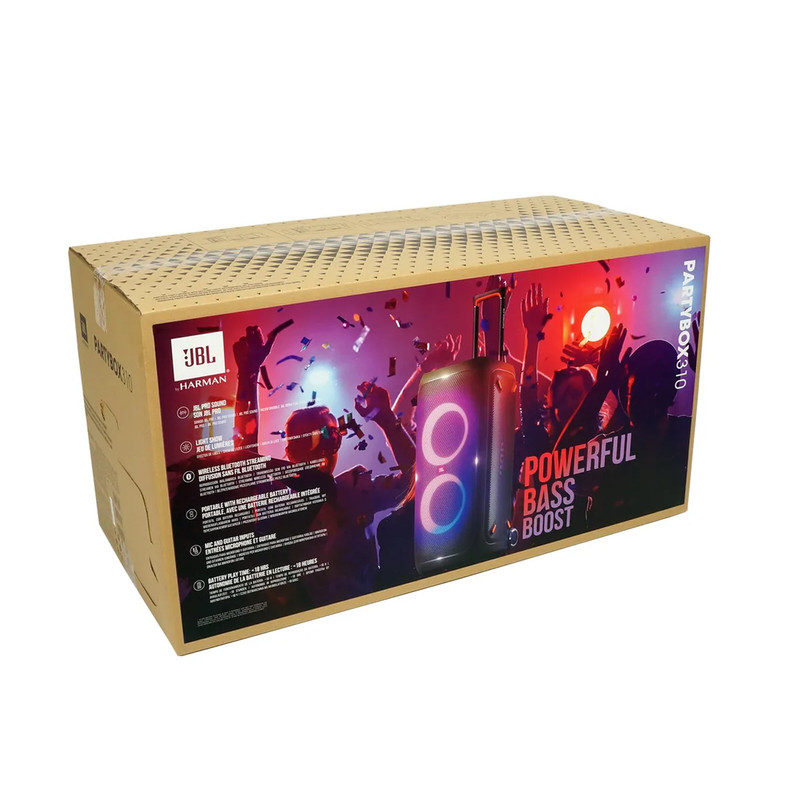 اسپیکر بلوتوثی پارتی باکس 310 یکی از جدیدترین محصولات کمپانی جی بی ال است که با مجهز بودن به درایورهای حرفهای، برای استفاده در محیطهای بزرگ عالی عمل میکند. پارتی باکس JBL 310 با ویژگیهای مثبتی چون قابلیت اتصال به بلوتوث، رقص نور خیرهکننده هماهنگ با موسیقی، باتری پرقدرت و قابلیت حمل آسان در میدان بسیار خوش درخشیده است. با توان خروجی بالا و باس قویای که این اسپیکر دارد، موسیقی را با کیفیت بالا پخش میکند. این اسپیکر حرفهای پرتابل از اتصالات مختلفی مانند بلوتوث، پورت USBو ورودی AUX پشتیبانی میکند و قابلیت کار هم با شبکه برق و هم با باتری را داراست. ناگفته نماند که قیمت جی بی ال ۳۱۰ با داشتن این ویژگیها بسیار مناسب است. در ادامه با ما همراه باشید تا این محصول فوقالعاده را بیشتر بشناسیم. کیفیت صدای فوقالعاده عملکرد اسپیکر بلوتوثی جی بی ال 310 در انواع موسیقی کمنظیر است. با وجود قابلیت تنظیمات EQ متعددی هم که در آن وجود دارد، تجربه فوقالعاده از پخش موسیقی را برای شما فراهم میکند. ويژگی Bass Boost این اسپیکر میزان باس تولید شده را افزایش میدهد تا هیجان بیشتری را ایجاد کند. ناگفته نماند که کیفیت صدای اسپیکر 310 jbl partybox در انواع میزان حجم صدا هم کاملاً متعادل است. همهفنحریف اسپیکر قابلحمل جی بی ال مدل PartyBox 310 برای استفاده در هر محیطی که فکرش را بکنید، مناسب است. از آنجایی که دارای دسته قابلحمل توکار است، به راحتی جابهجا میشود و نگرانی خاصی بابت وزن 17 کیلوگرمی آن وجود ندارد. این بلندگو در برابر پاشش آب مقاوم بوده و موفق به دریافت گواهی IPX4 شده است. به لطف این ویژگی میتوانید از این بلندگو در هنگام بارش باران و در کنار استخر و ساحل هم استفاده کنید. باتری اسپیکر پارتی باکس ۳۱۰ عملکرد فوقالعادهای دارد به طوری که طی 3 ساعت شارژ شده و میتواند تا ۱۷ ساعت موسیقی پخش کند. البته میزان مصرف باتری این محصول به نوع موسیقی و بلندی حجم صدا هم بستگی دارد. اما در کل میتوان گفت از عملکرد خوبی برخوردار است. در صورتی که شارژ باتری این اسپیکر کم باشد یا اینکه که به هر دلیلی نخواهید از باتری آن استفاده کنید، نگران نباشید چون اسپیکر قابلحمل جی بی ال مدل PartyBox 310 با برق هم کار میکند. اتصال آسان اتصال به بلندگو PartyBox 310 به سادگی آب خوردن است. برای پخش موسیقی فقط کافی است بلوتوث موبایل یا تبلت خود را روشن کنید، این اسپیکر را پیدا کرده و متصل شوید. حالا میتوانید هم به پلی لیست خود دسترسی داشته باشید و هم به صورت آنلاین موسیقی پخش کنید. همچنین از آنجایی که این بلندگو به پورت USB مجهز شده است، میتوانید آهنگهای موردعلاقه خود را در یک فلش مموری بریزید و از طریق پورت USB به اسپیکر متصل کرده و پخش کنید. این سیستم همهچیزتمام به کابل AUX هم وصل میشود و با دسترسی به آهنگهای گوشی موبایل شما کار را راحت میکند. نکته جالب اینجاست که این بلندگو به اسپیکر مشابه هم وصل میشود و با این کار حجم صدای موسیقی بیشتر شده و محدودهی پوشش صدا افزایش مییابد. شرکت سازنده در اسپیکر PartyBox 310 پورت ورودی میکروفون هم در نظر گرفته تا برای اجرا یا گفتوگو هیچ مشکلی نداشته باشید. علاوه بر ورودی میکروفون، دکمه تنظیم ساز گیتار هم در این بلندگو تعبیه شده تا برای اجرا زنده هم بسیار کاربردی باشد. رقص نور زیبا و جذاب یکی دیگر از قابلیتهای این اسپیکر، قابلیت ایجاد رقص نور خیرهکننده آن بوده که برای یک مهمانی پر شور و هیجان از واجبات است. این سیستم نورپردازی علاوه بر اینکه با موسیقی هماهنگ است، قابلتغییر هم هست و میتوانید به سلیقه خودتان آن را عوض کنید. در پایان این مژده را به شما میدهیم که اگر دنبال خرید یک اسپیکر بلوتوثی هستید، با خرید اسپیکر پرتابل بلوتوثی جی بی ال JBL PartyBox 310 از دیجی کالا میتوانید از پخش موسیقی در مهمانیهای خود لذت ببرید و تجربه بینظیری را برای خود به ارمغان آورید.