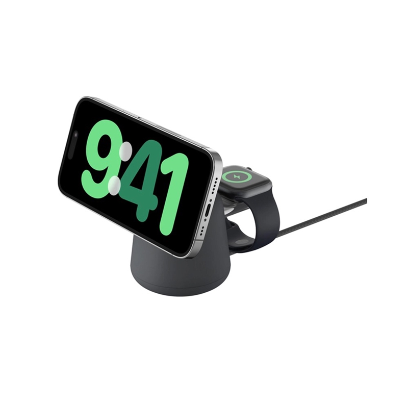 این داک شارژ فوقالعاده راحت، 15 وات شارژ بیسیم سریع را به آیفون 12 و بالاتر، اپل واچ 4 و بالاتر و بسیاری از مدلهای ایرپاد شما ارائه میکند.