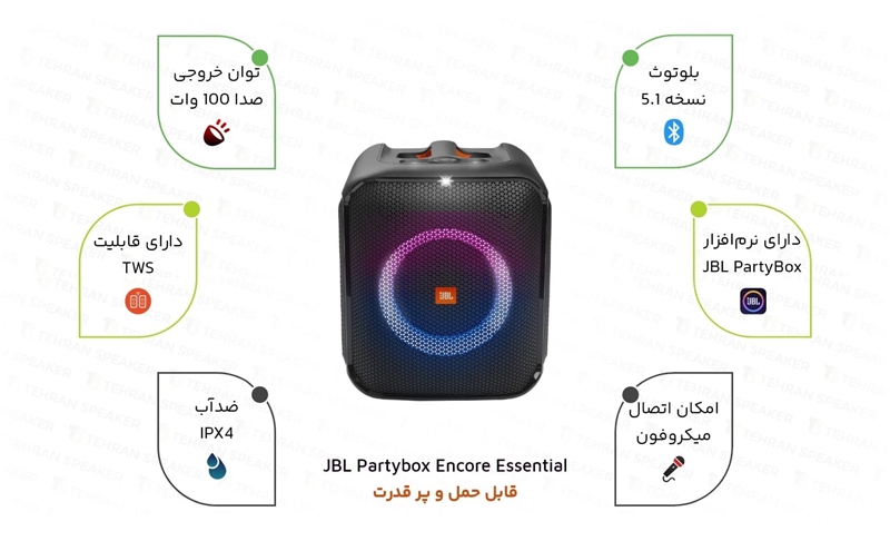 صفحه نخست    جستجو   لوازم صوتی   اسپیکر و بلندگو قابل حمل   اسپیکر JBL Partybox Encore Essential با میکروفون