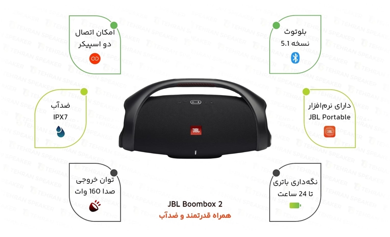 تکنولوژیهای اسپیکر جی بی ال Boombox 2 به شرح زیر میباشد :