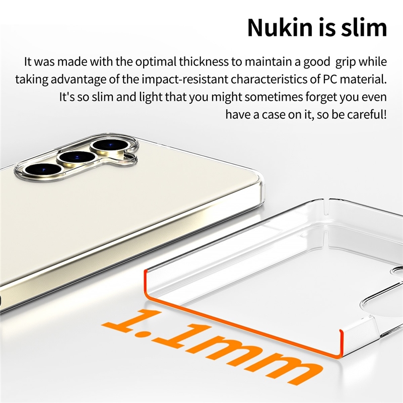 قاب سامسونگ S24 Ultra Araree Nukin Clear از PC ساخته شده است که قسمت پشتی آن شفاف است. برای محافظت از صفحه نمایش و دوربین لبه های قاب و دور اطراف دوربین نیز دارای پوششی از جنس PC مجهز شده اند.