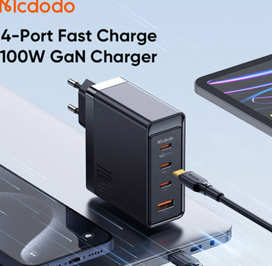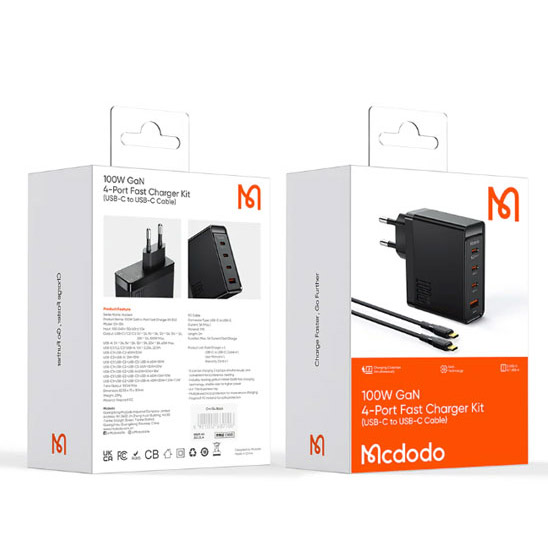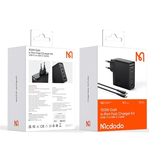 آداپتور 4 پورت 100 وات همراه با کابل دو سر تایپ سی مک دودو Mcdodo GaN Fast Charger Kit CH-5141