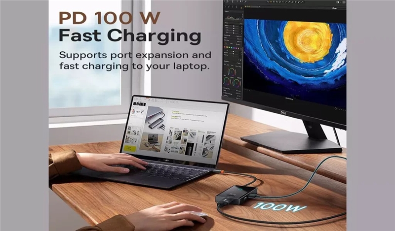 پورت Type C: این هاب دارای یک پورت تایپ سی بوده که از قابلیت PD پشتیبانی می کند. PD یا Power Delivery قابلیتی است که اجازه می‌دهد شما بتوانید از طریق پورت تایپ سی لپ تاپ خود را با سرعت شارژ کنید.