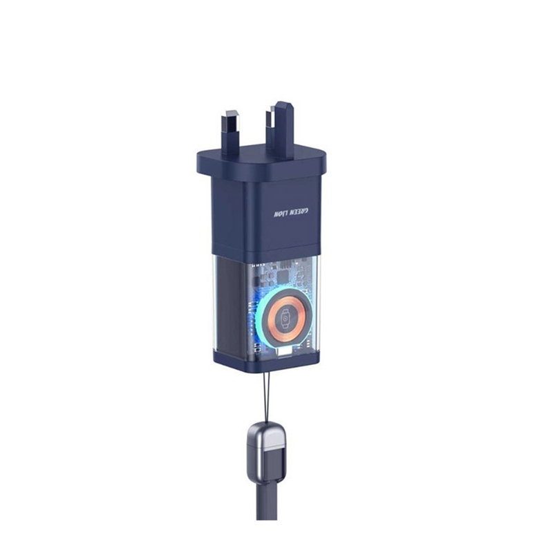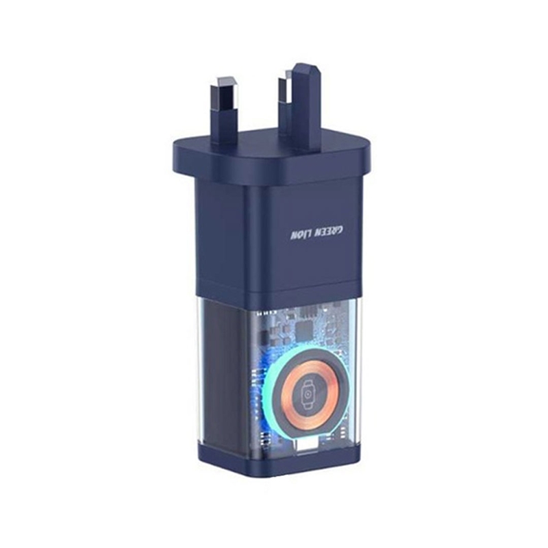 پاوربانک وایرلس گرین لاین GNPBGANCH5KBL، محصولی فوق‌العاده جذابی از برند گرین لاین بوده که قرار است پاسخگوی طیف وسیعی از نیازهای شما باشد. در یک سر این محصول، شارژر مجهز به فناوری GaN قرار گرفته است که به شما این امکان را می‌دهد که گوشی خود را با توان 20 وات شارژ کنید. بدین منظور باید این محصول را وسط باز کنید. در سر دیگر این محصول یک پاوربانک قرار گرفته که می‌توانید از آن به صورت چسبیده به شارژر و یا جدا شده استفاده کنید. بر روی این پاوربانک، یک برد شارژ مغناطیسی قرار گرفته که می‌توانید ساعت هوشمند خود را به کمک آن شارژ کنید. بند این محصول نیز خود یک کابل است. در نتیجه به طور کلی 2 کابل باکیفیت بر روی همراه این محصول عرضه می‌شود که یکی Type-cبه Type-c و دیگری Type-c به لایتنینگ است. در کلیت شارژر دیواری Green Lion GNPBGANCH5K محصولی بسیار جذاب بوده که می‌توانید با خرید آن از یک محصول چندکاره لذت ببرید.