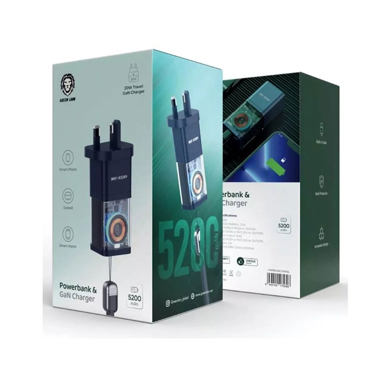 پاوربانک 5200 و شارژر دیواری گرین لاین Green Lion GNPBGANCH5K توان 20 وات دارای قابلیت شارژ اپل واچ