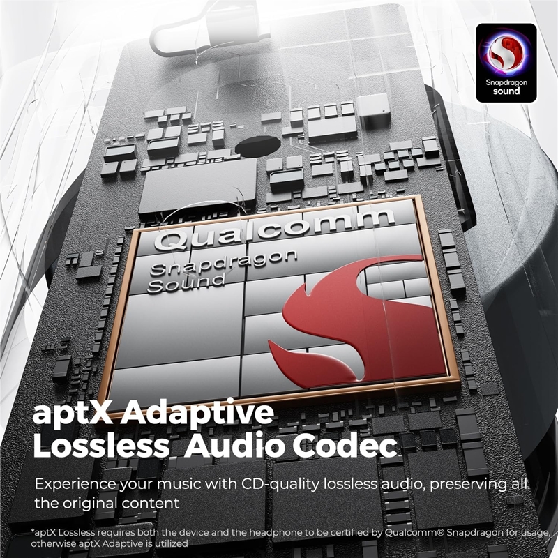 هندزفری SoundPeats Air4 با فناوری Snapdragon Sound بهینهسازی شده که باعث کیفیت بالا و تاخیر پایین در هنگام استفاده از این هندزفری شده است. بعلاوه هدفون SOUNDPEATS Air4 از کدک Qualcomm aptX Lossless پشتیبانی میکند، کدکی که میتواند صدای با کیفیت بالا و بینقص را تا 16 بیت/44.1 کیلوهرتز ارائه دهد؛ و همچنین aptX Adaptive میتواند به صورت پویا نرخ بیت را بسته به محتوای شما تنظیم کند و آن را بر اساس کیفیت صدا و الزامات تأخیر، مانند هنگام بازی یا تماشای ویدیو، بهینه کند.