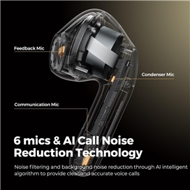 دارای 6 میکروفون با حذف نویز فعال هیبریدی برای مکالمه (ENC) و حالت تاخیر پایین
