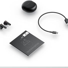 در بسته بندی هندزفری بلوتوث SoundPeats Air4 علاوه بر خود هندزفری، یک عدد کابل شارژ و یک دفترچه راهنما وجود دارد.