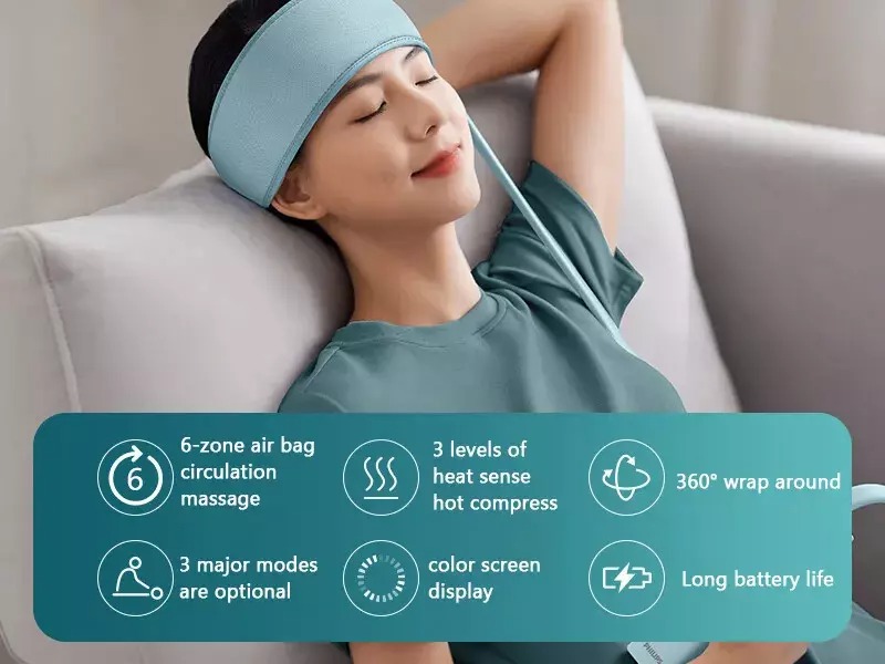 هدبند ماساژ فیلیپس متناسب با محیط سر طراحی شده است و دارای 6 منطقه ماساژ (کیسه فشار هوا) است که پیشانی، معابد و منطقه اکسیپیتال را پوشش می دهد. کیسه های فشار هوایِ ماساژور سر Philips PPM1321 ماساژ دست انسان را شبیه سازی کرده که می تواند به طور موثر عضلات سر را شل کند و گردش خون را افزایش دهد.