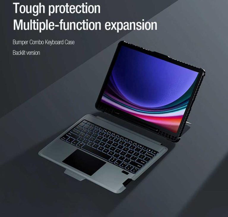 کیف کلاسوری کیبورددار نیلکین مدل Bumper Combo Backlit Keyboard مناسب برای تبلت سامسونگ Galaxy Tab S9 Plus