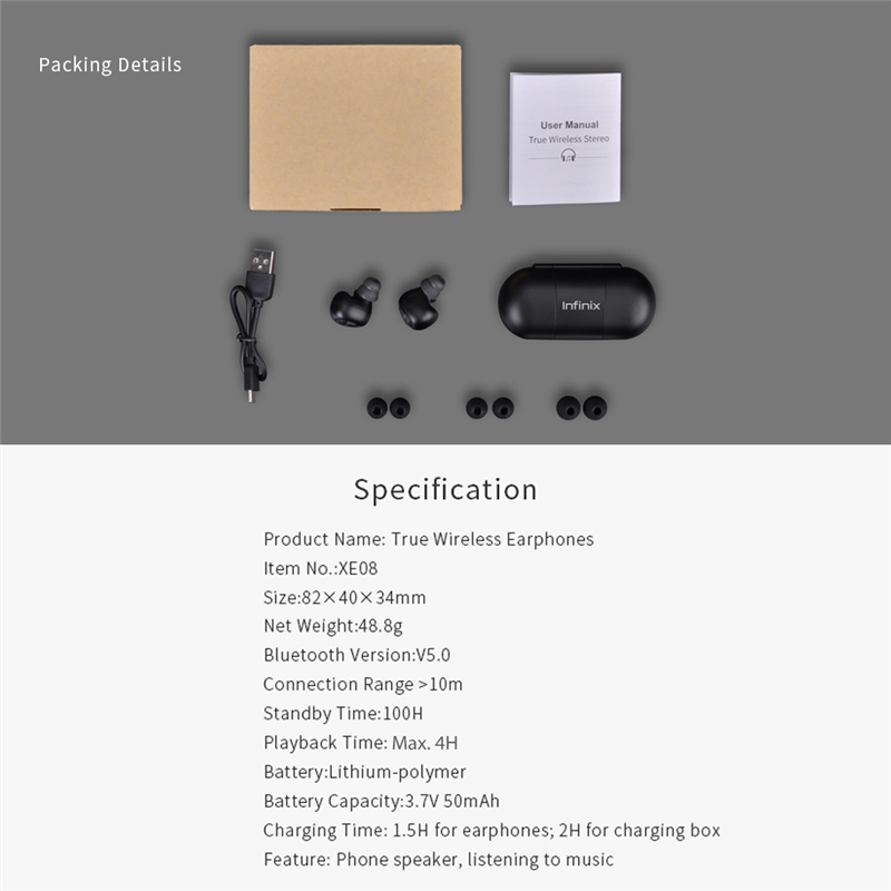 ویژگیهای هدفون بی سیم Infinix XE08 TWS True BT Earphones Sport Running Headphones