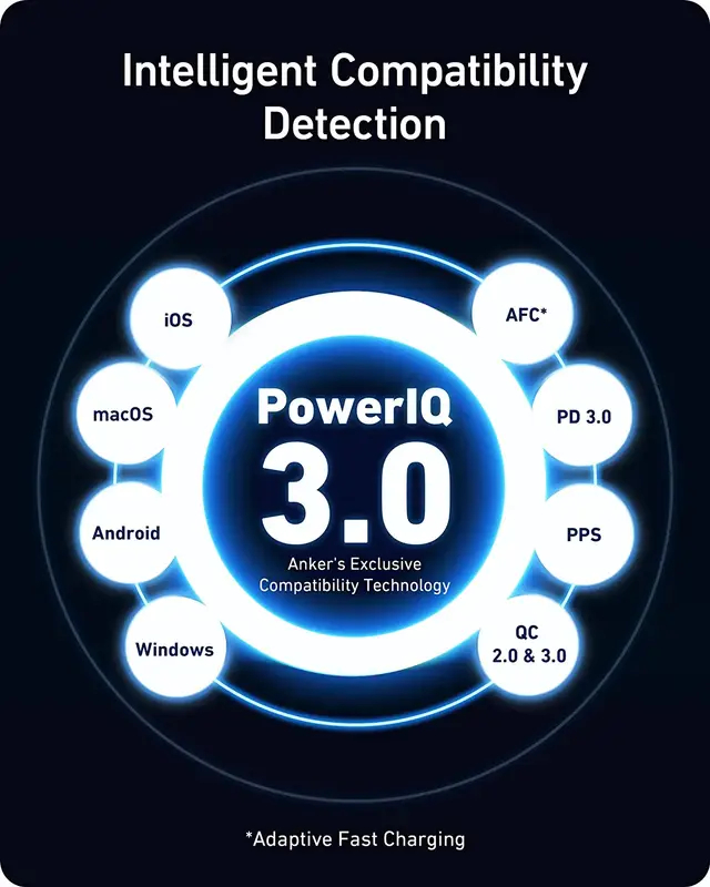 فناوری انحصاری PowerIQ 3.0 Anker سازگاری تقریباً با هر سیستم عامل یا پروتکل شارژ را تضمین می کند، بنابراین مهم نیست به چه دستگاهی متصل می شوید، برق مورد نیاز خود را دریافت خواهید کرد.