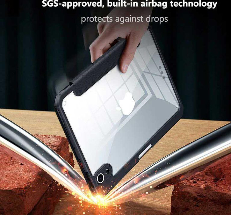 طراح بزرگی که آیپدها دارند باعث شده است که همیشه احتمال آسیب به آنها وجود داشته باشد.بنابراین بهتر است برای مراقبت از تبلت خود یک کیف زیبا تهیه کنید.با خرید کیف کلاسوری اپیکوی مدل Xundd Dream یک کیف شیک برای آیپد خود خواهید داشت.این کاور بسیار باکیفیت است و از مواد اولیهی PC و TPU درجه یک ساخته شده است.طراحی زیبایی که این کاور دارد چشمها را به خود خیره میکند.از جنس TPU، چرم PU و پلاستیک سخت ساخته شده است و امنیت بالایی را به تبلت شما اضافه میکند.برای مقاومت بیشتر از دولایه محافظتی استفاده شده است.قسمت شفاف پشتی از جنس PC محکم و ضد خش است و به شکلی شفاف نمایانگر آیپد شما خواهد بود. برای لبههای قاب از TPU منعطف استفاده شده تا در برابر شوک و ضربه مقاوم باشد. احتمالا برای شما هم اتفاق افتاده است که به طور ناگهانی شاهد سقوط تبلت یا گوشی خود باشید.اگر دقت کرده باشید آسیب بیشتر از همه گوشهها را تهدید میکند.برای حل این مشکل به هر گوشه قاب در چهارگوشه بامپر اضافه شده. پس باوجود این کیف اگر آیپد از دستتان بیافتد آسیبی نمیبیند. اگر زیاد با آیپد کار میکنید برای راحتی لازم است بتوانید آن را در زوایای مختلف قرار دهید و برای امور طراحی و تماشای فیلم یا مطالعه از آن استفاده کیند. روی روکش کیف دو برش قرار دارد، در کیف کلاسوری خود را میتوانید به شکل یک پایه استفاده کنید و آن را در برش های قرار داده شده بگذارید تا در دو زاویه دلخواه بتوانید از آیپد خود برای امور مختلف استفاده کنید. با اینکه اکثر کیفها نسبت به قاب ضخامت بیشتری دارند اما ضخامت این کیف به گونهای است که به هیچ وجه شکل و فرم تبلت شما را به هم نمیریزد و همچنان خوشاستایل باقی میماند. برای این کار به یک استند نیاز دارید. بهکمک این بامپر میتوانید تبلتتان را در حالت یا افقی در هر زاویهای که میخواهید تنظیم کنید. اپیکوی فکری برای قلم هم کرده. اگر جایی میروید و فقط میخواهیدآیپدتان را با خود ببرید لازم نیست نگران قلم باشید. کنار تبلت جایی برای قلم هم در نظر گرفته شده است. برشهای این کیف کاملا دقیقاند.جای تمام کلیدهای فیزیکی،دوربین،بلندگو و دیگر چیزها بادقت در نظر گرفته شده. بنابراین در استفاده از آن به مشکل برنمیخورید.این کاور مانع از ایجاد خط و خراش بر روی دوربین آیپد شما میشود.
