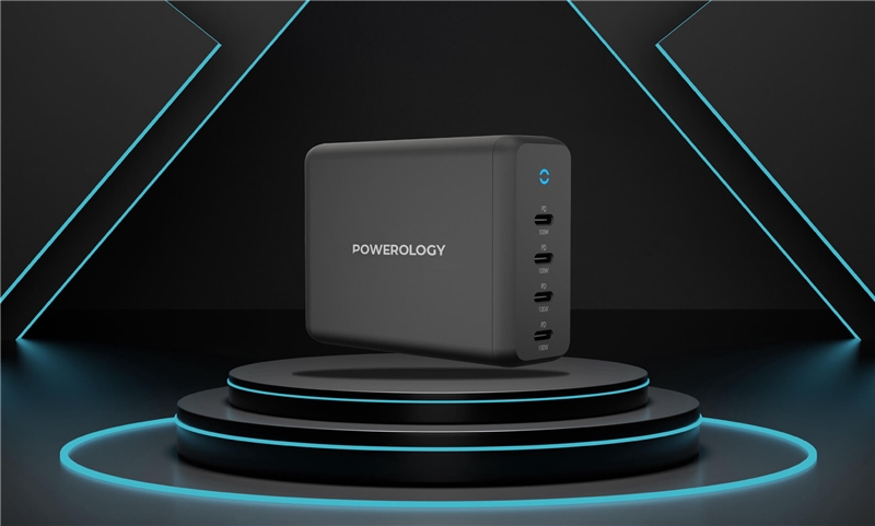 این شارژر با چهار پورت USB Type-C که با فناوری شارژ سریع PD100W، دستگاه‌های هوشمند و لپ‌تاپ شما را به سرعت شارژ می‌کند. این مقدار ظرفیت دستگاه‌های سازگار را در حدود نیم ساعت از 0% به 60% شارژ می‌کند.