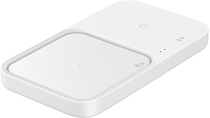 همونطور که در بالاتر گفتیم شارژر وایرلس سامسونگ Duo EP-P5400 دارای 2 پد جداگانه شارژ است که می تواند بصورت همزمان موبایل، ساعت هوشمند یا هندزفری شما را شارژ کند. پد سمت چپ مناسب موبایل و هندزفری با پشتیبانی از قابلیت PD و شارژ سریع 15 واتی است. همچنین پد سمت راست مناسب برای ساعت های هوشمند و هندزفری بوده و با این پد می توانید ساعت یا هندزفری خود را شارژ کنید. برای شارژ درست ساعت های هوشمند شما، قسمتی که روی شارژر تعبیه شده، به آهنربای داخلی مجهز شده است.البته این قسمت فقط برای Galaxy Watch سامسونگ طراحی شده است و مناسب Galaxy Active2 and Active و Galaxy Watch4 and Watch3 می باشد. بعلاوه شما می توانید هندزفری های گلگسی بادز را نیز از طریق این پد شارژ کنید.
