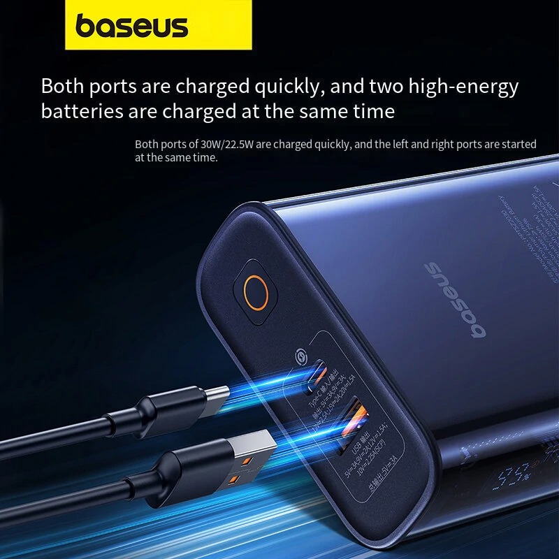 پاوربانک Baseus PPTSZ2030 در جمع دارای 2 درگاه شامل 1 عدد Type C و 1 عدد USB است. البته درگاه Type C هم ورودی است که برای شارژ پاوربانک از آن استفاده می شود و هم خروجی که برای شارژ دستگاه هایتان می توانید از آن استفاده کنید.