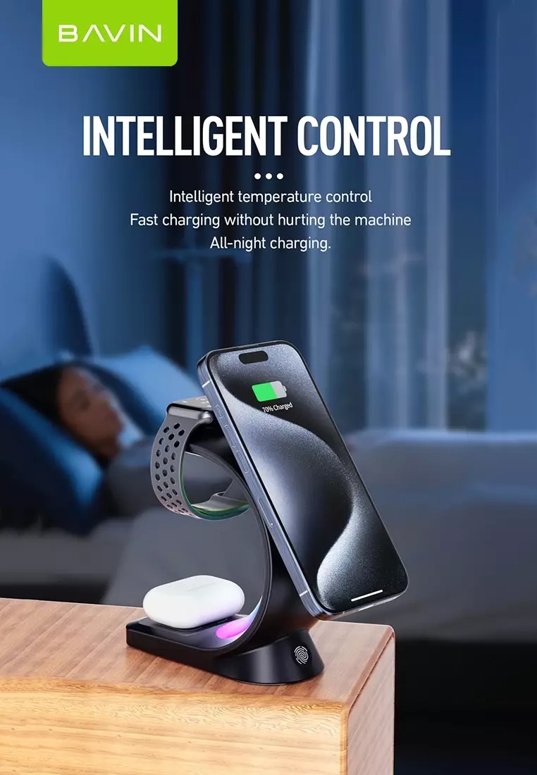 استند و شارژر وایرلس چندکاره باوین Bavin PC1071 توان 15 وات