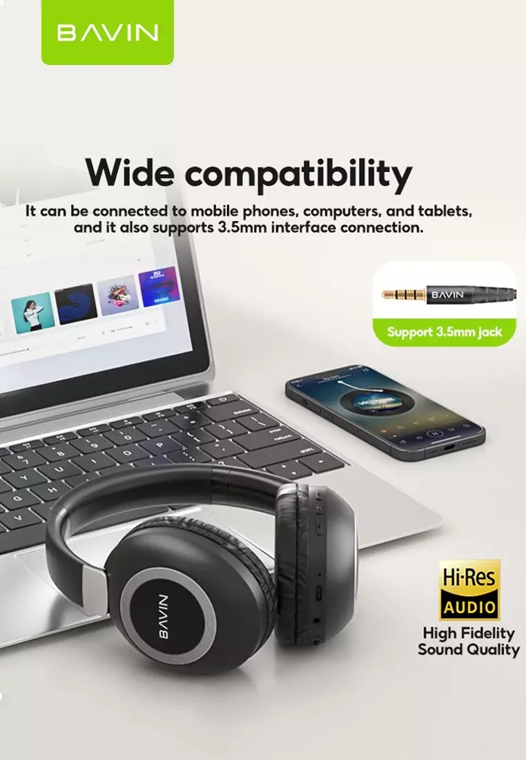 علاوه بر این شما میتوانید به کمک درگاه جک 3.5 قرار گرفته روی هدفون بلوتوثی Bavin BH-37، هدفون خود را به صورت باسیم نیز به انواع دستگاههای متصل کرده و از آن استفاده کنید.