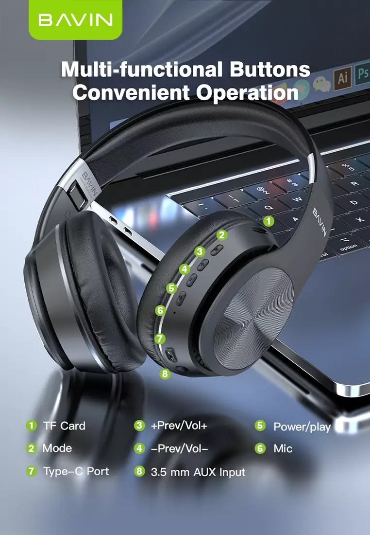 علاوه بر این شما میتوانید به کمک درگاه جک 3.5 قرار گرفته روی هدفون بلوتوثی Bavin BH-51، هدفون خود را به صورت باسیم نیز به انواع دستگاههای متصل کرده و از آن استفاده کنید.