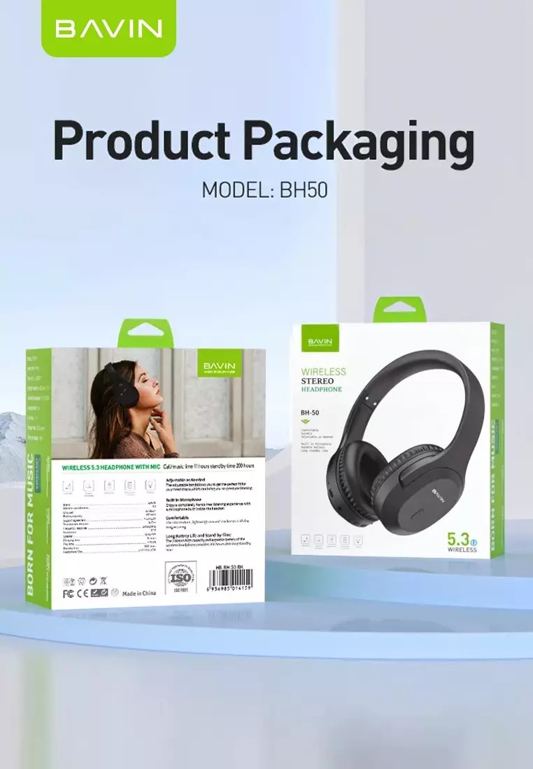 دست‌وپاگیر بودن سیم هدفون و هندزفری و ظهور انواع تکنولوژی‌های بی‌سیم سبب شده امروز دیگر هندزفری‌ها و هدست‌های بی‌سیم تا حد زیادی جای هدفون‌های سیم‌دار ساخته‌اند. کمپانی باوین نیز محصولات باکیفیتی در زمینه هدفون بی‌سیم ساخته است. هدفون بلوتوث باوین Bavin BH-50 یکی از محصولات با کیفیت این کمپانی است.