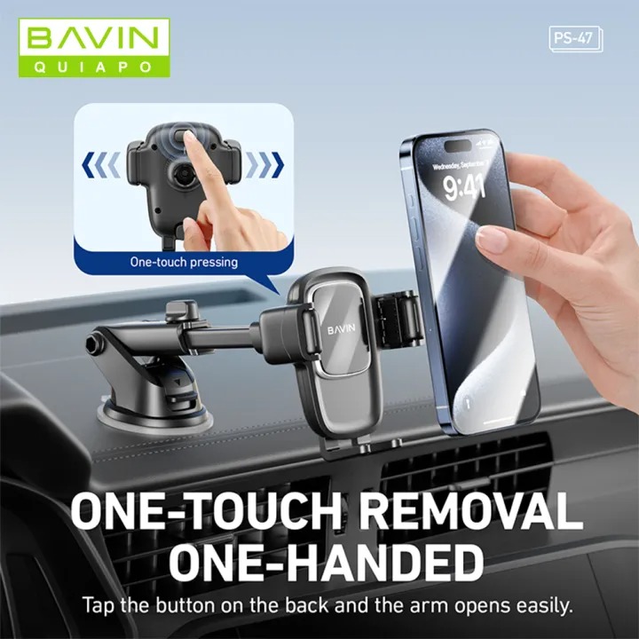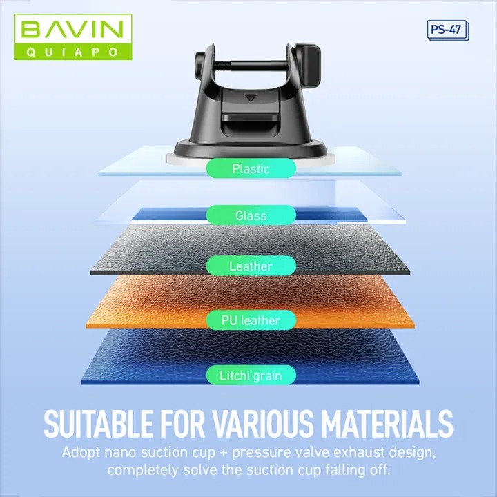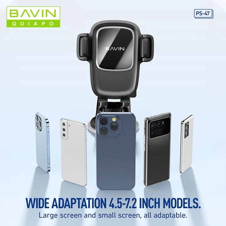 هولدر داشبوردی Bavin PS-47 برای گوشی هایی با سایز 4.5 تا 7.2 اینچ مناسب است و آن ها را به خوبی مهار می کند.