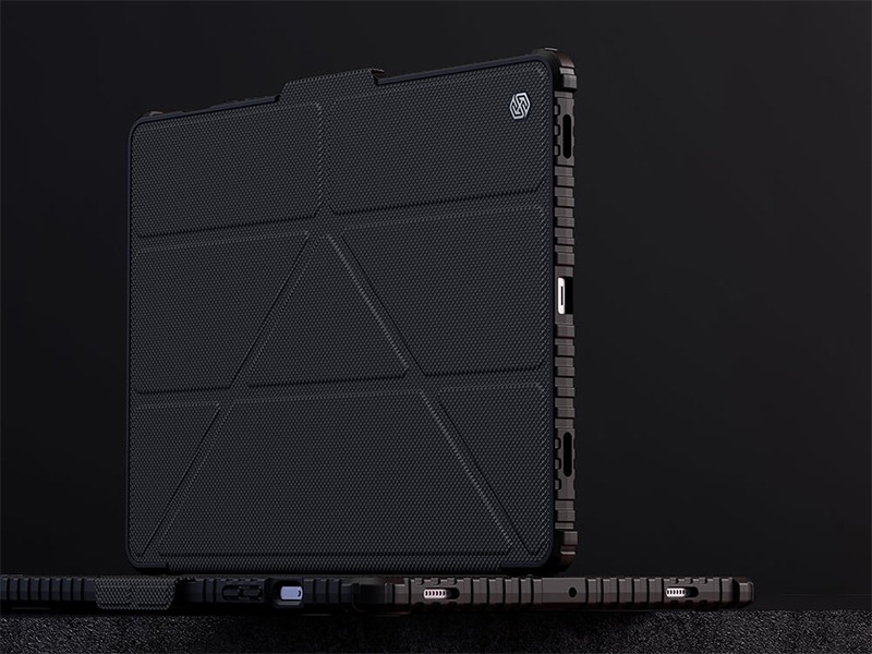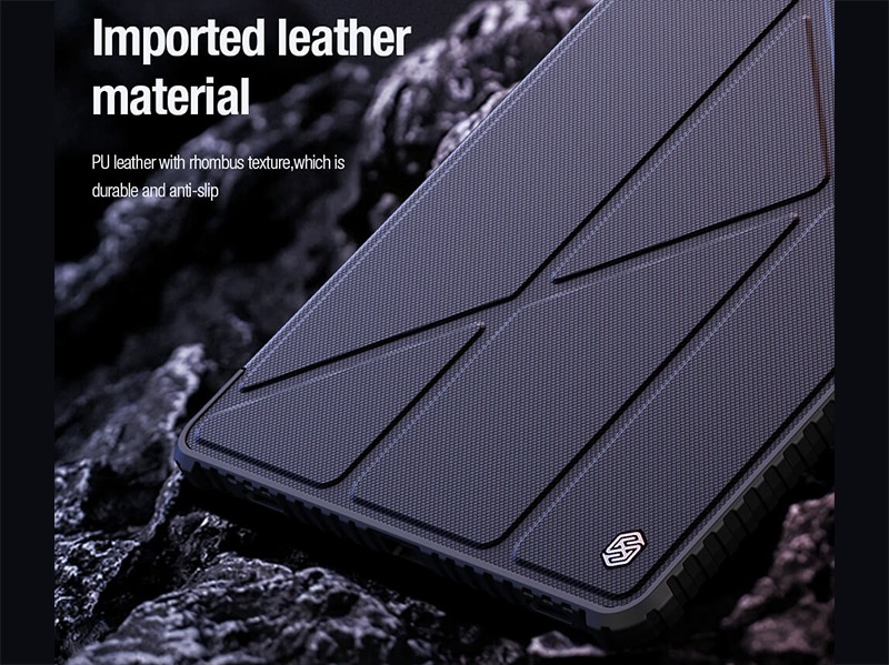 نیلکین که می توان به آن عنوان بزرگترین شرکت ساخت قاب و کیف های محافظ گوشی را داد، از تبلت ها هم غافل نمانده است. کیف چرمی هوشمند نیلکین تبلت Samsung Galaxy Tab S9 Plus از موادی چون TPU، PC و PU ساخته شده و کاملا مطابق با ابعاد تبلت شما می‌باشد. این کیس در اطراف بدنه دارای بامپر است تا در صورت افتادن و ضربه دیدن هیچ آسیبی به لبه‌های تبلتپرو وارد نشود.