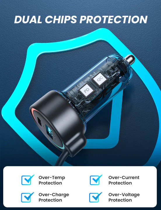 شارژر فندکی Joyroom JR-CL08 از شارژ ایمن نیز پشتیبانی می کند و به خوبی از گوشی شما محافظت می نماید، محافظت در برابر اتصال کوتاه، شدت جریان بیش از اندازه، جلوگیری از افزایش بیش از اندازه دما از موارد قابل ذکر برای شارژ ایمن آن است.