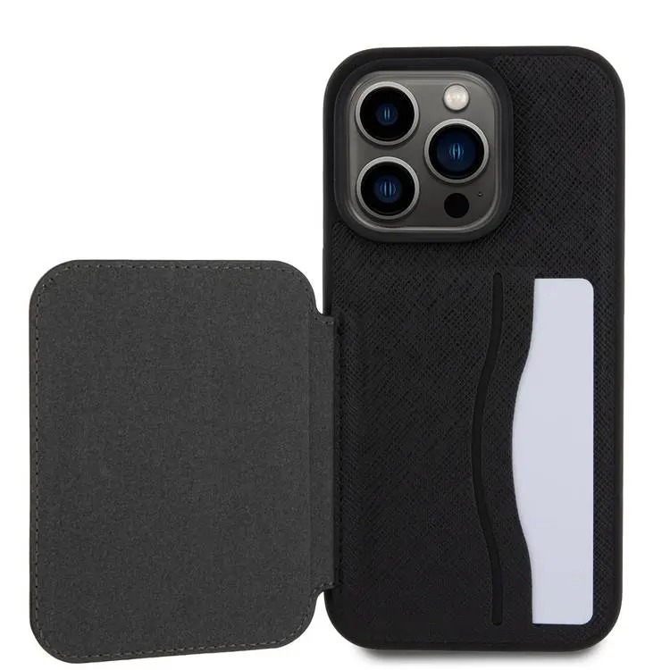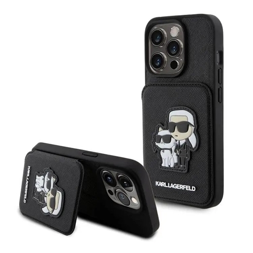 قاب برند کارل لاگرفلد اورجینال مدل SAFFIANO WITH CARDSOLD AND STAND مناسب برای گوشی موبایل اپل آیفون 15 پرو