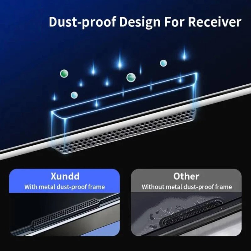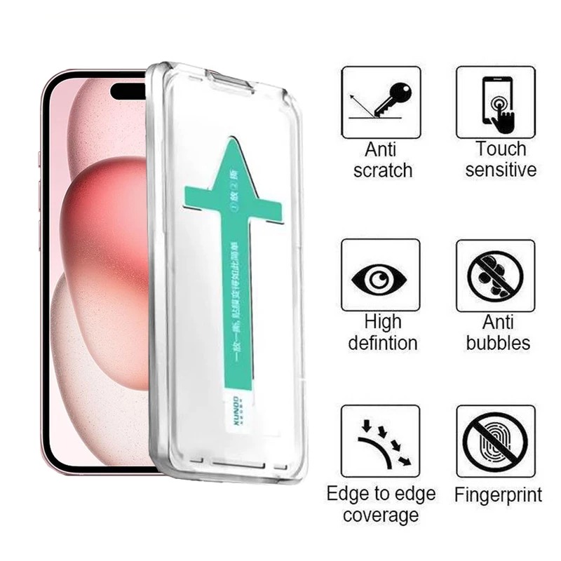 محافط صفحه نمایش زاند مدل Xundd Axe Easy Install یکی از جدید ترین انواع محافظ صفحه نمایش های شیشه ای زاند است که به کمک تکنولوژی روز دنیا شیشه حرارت دیده و 9H با مقاومت ویژه در برابر ضربه و خط و خش را تولید کرده است.نکته ای که در خصوص این محافظ صفحه بسیار حائز اهمیت است و انرا از سایر مدل ها متمایز کرده این است که گلس از ابتدا داخل یک کیت مخصوص نصب قرار گرفته است.به این شکل که پس از تهیه Xundd Axe Easy Install میتوانید به راحتی هرچه تمام تر آن را بدون هیج گونه حباب و کاملا به صورت دقیق روی گوشی همراه خود نصب کنید. تنها کافی است که پس از تمیز کردن شیشه LCD گوشی همراه خود به صورت دقیق و گرفتن گرد و غبار روی آن توسط برچسب، و قرار گرفتن در محیط بدون گرد و غبار، ابتدا برچسب پشت محافظ صفحه نمایش را از آن جدا میکنید و سپس با دقت کیت مخصوص را به تناسب ابعاد گوشی همراه خود روی آن قرار میدهید. پس از آن تنها با دو حرکت ساده گلس شما بدون هیچ نقصی روی صفحه نمایش گوشیتان نصب میشود. تنها با یک کلیک پس از قرار دادن کیت تنها لازم است فلش سبز رنگ روی گلس را از وسط به سمت پایین فشار داده و آن را 10 الی 15 ثانیه نگه دارید تا به صورت خودکار محافظ صفحه متناسب با گوشی همراه شما روی آن به بهترین شکل بچسبد و در پایان از پایین برچسب فلش سبز رنگ گرفته و آنرا جدا کنید. البته بهتر است با دست دیگر خود کیت را از پایین گرفته تا بلند نشود. فراموش نکنید که روکش را از روی گلس خود جدا سازید تا گلسی با بهترین کیفیت را روی گوشی همراه خود مشاهده نمایید.این نوع گلس کاملا شفاف بوده و حتی 1% کیفیت صفحه نمایشگر شمارا کم نخواهد کرد. ساختار خارجی گلس به صورت نرم قرار داده شده تا ضمن مقاومت بیشتر در برابر ضربات احتمالی،احساس خوبی را به شما موقع کار با گوشی همراه خود القا کند.این نوع گلس به همراه کیت نصب همراه خود حتی مورد تحسین افرادی که به صورت حرفه ای در کار نصب گلس هستند می باشد. چرا که تکنولوژی و طراحی جدید درصد خطا را تا حد زیادی در هنگام نصب گلس کاهش میدهد و دیگر استرسی بابت نصب و هدر رفت هزینه ای که بابت گلس گوشی همراه خود کرده اید نخواهید داشت.ویژگی عالی روی قسمت بالایی طرحی به شکل توری قرار گرفته است تا از ورود گرد و غبار داخل اسپیکر بالایی جلوگیری کند بدون انکه اختلالی در انتقال صدا ایجاد شود.
