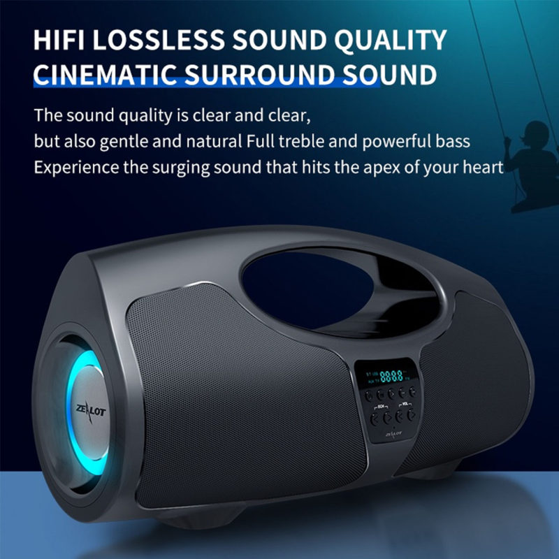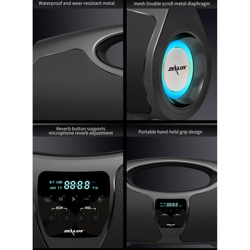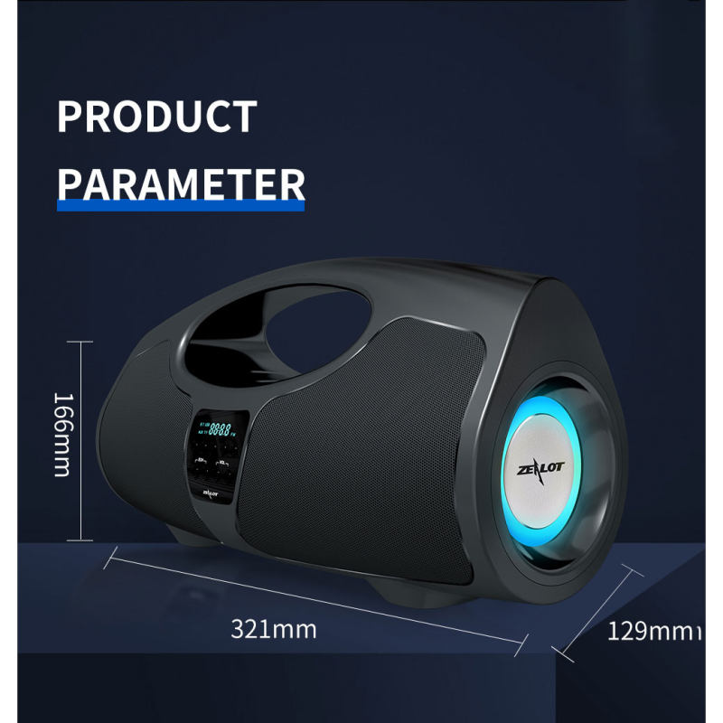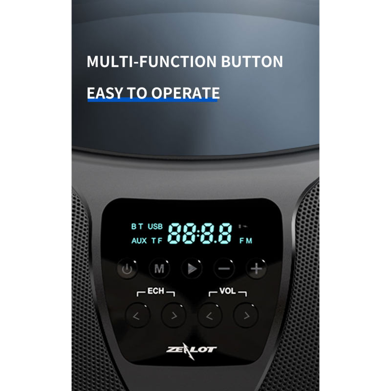 ابعاد اسپیکر zealot p1 را باید 26×20×40 سانتی متر دانست و وزن 4 کیلوگرمی آن هم توانسته نکات مختلف را به کاربران گوشزد کند. جنس بدنه این اسپیکر از پلاستیک باکیفیت بوده و در کنار نمایشگر شاهد قرارگیری نشانگر ال ای دی خواهید بود که میتواند وضعیت دستگاه را نمایش دهد. البته نباید از قابلیت رقص نور آن به سادگی بگذرید که تاثیر زیادی در افزایش زیبایی و کیفیت طراحی دستگاه داشته است. در صورتی که نگران کیفیت نمایشگر هستید، بهتر است بدانید از دوام بالایی برخوردار بوده و در برابر خط و خش از خود مقاومت نشان میدهد.