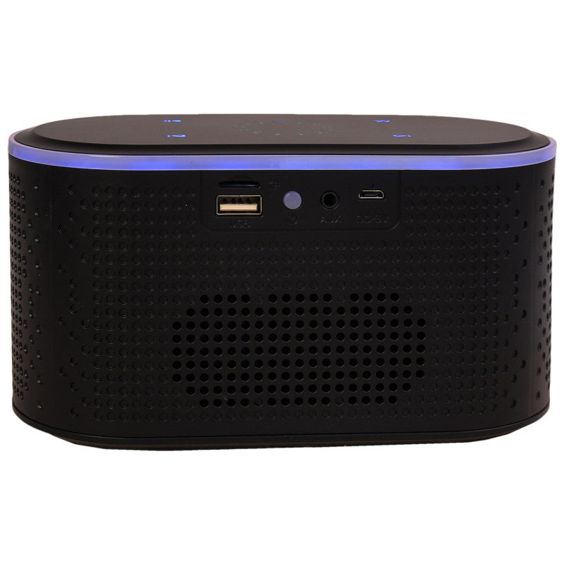 بالای بدنه این اسپیکر یک پنل لمسی طراحی شده که می‌توانید به کمک آن هم موزیک را عوض کنید و هم صدا را کم و زیاد کنید. این پنل همچنین میزان شارژ اسپیکر را هم به شما نشان می‌دهد و دارای نور آبی است که جلوه زیبایی به آن بخشیده.