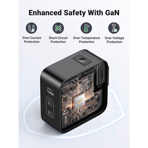 شارژر یوگرین مدل CD296 از فناوری GaN Tech استفاده میکند که به کوچکتر شدن و سبکتر شدن شارژر کمک میکند و در عین حال کارایی را افزایش میدهد. همچنین این فناوری به کاهش گرمای تولیدی توسط شارژر کمک میکند و آن را ایمنتر و قابل اعتمادتر میکند.