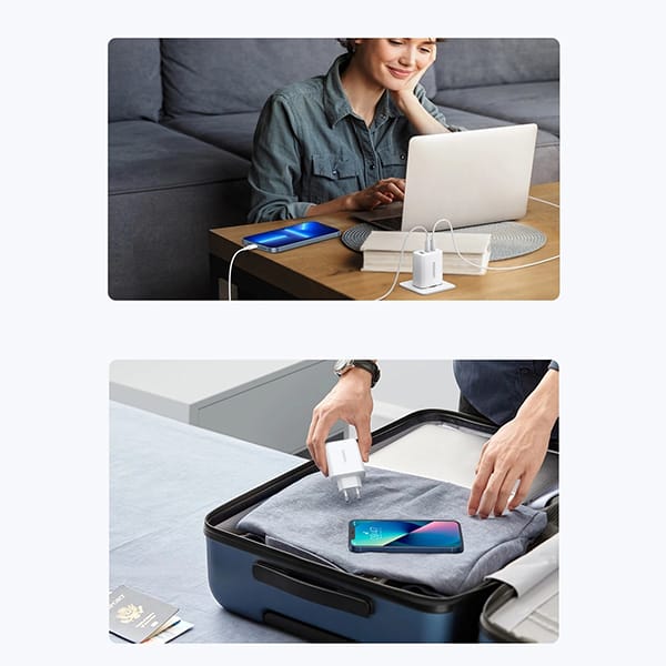 شارژر دیواری یوگرین با دو پورت USB-C و یک پورت USB-A  از فناوری‌های شارژ سریع PD و QC پشتیبانی می‌کند که می‌تواند دستگاه‌های شما را به سرعت و کارآمد شارژ کند.