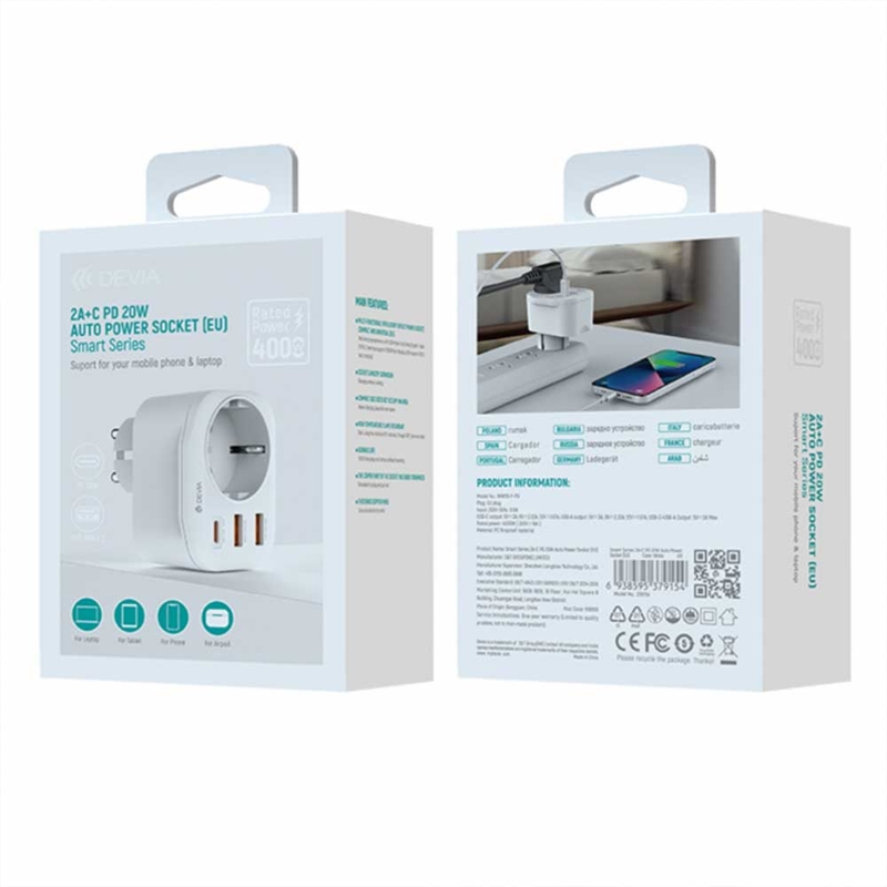 شارژر دیواری سوکت دار Devia Smart Series 2A+C PD 20W Auto Power Socket (EU)