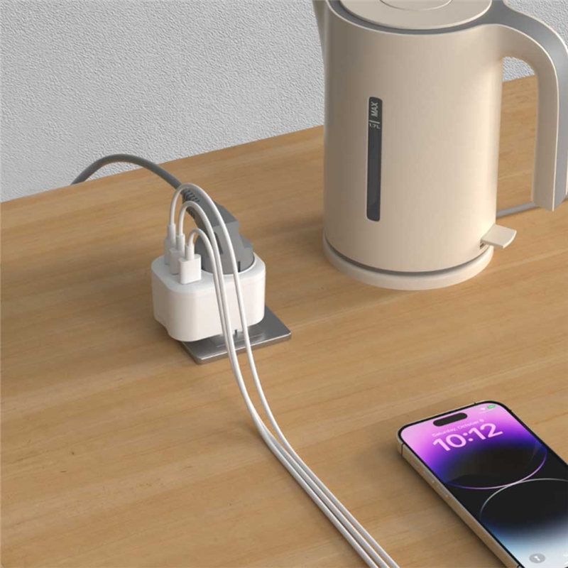 سایر ویژگی هاتوان خروجی 20 وات: پشتیبانی از فناوری Power Delivery (PD) برای شارژ سریع و کارآمد. پورت‌های متنوع: دو پورت USB-A و یک پورت USB-C برای شارژ همزمان چند دستگاه. داشتن سوکت برق دوشاخه استاندارد ایران برای اتصال لوازم برقی دیگر به همان پریز مواد مقاوم و باکیفیت: ساخته شده از مواد PC مقاوم و دارای گواهینامه‌های بین‌المللی مانند CE. طراحی جمع و جور و سبک: مناسب برای حمل در سفر، محل کار و استفاده روزمره. ایمنی پیشرفته: محافظت در برابر حرارت، اضافه بار، ولتاژ بیش از حد و اتصال کوتاه.