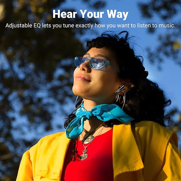 این هدفون بلوتوث بی‌سیم که از حذف نویز فعال ANC پشتیبانی می‌کند، از نویز محیط تا ۲۵ دسی‌بل (حالت حذف نویز) جلوگیری می‌کند، بنابراین می‌توانید هر چیزی را که دوست دارید با صدایی با کیفیت بالا بشنوید. کافیست هدفون سمت راست را به مدت ۲ ثانیه فشار دهید تا به صدای محیط بروید، صداهای محیط را برای شنیدن آنچه در اطرافتان می‌گذرد یا صحبت با دیگران به صدا درآورید.