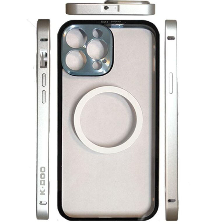 یک انتخاب عالی که زیبایی اصیل گوشی و محافظت بالا را با هم ترکیب میکند. این قاب برای کسانی که دوست ندارند با گذاشتن قاب رنگ گوشی را بپوشانند ایدهآل است زیرا پشت آن کاملا شفاف است.با خرید کاور کی.دوو مدل Mag Titanium میتوانید گوشی خود را به سادهترین و راحتترین روش شارژ کنید،زیرا خاصیت مغناطیسی دارد و شارژر وایرلس به آن میچسبد. نکته مهم : برای نصب قاب روی گوشی ابتدا باید از قسمت بالای قاب قسمت پشت قاب را جدا کنید و بعد گوشی رو داخل قاب قرار دهید و سپس قسمت پشتی قلب را وصل کنید.این قاب زیبایی گوشی شما را نخواهد پوشاند. محافظت خیلی خوبی هم از گوشی شما به عمل میآورد و میتوانید با آن تجربهی لذت بخشی از کار با گوشی خود داشته باشید.مهمترین ویژگی کاور کی.دوو مدل Mag Titanium پشتیبانی آن از Magsafe است.در عین حال نسبت به سایر قاب ها برتریهای بسیاری دارد: امنیت گوشی را تضمین میکند و جلوی هرگونه آسیبی را به بدنهی حساس گوشی میگیرد.با خرید این قاب به بهترین نحو از گوشی خود مراقبت میکنید و در عین حال ظاهری فوقالعاده هم به آن هدیه خواهید کرد.در قاب Mag Titanium دور تا دور از آلیاژ آلومینیوم ماشینکاری شده استفاده شده است.این متریال درجه حافظتی این قاب را تا گرید نظامی بالا برده است.در حدی که حتی با سقوط از ارتفاعی در حدود سه متر هم میتواند گوشی را در امان نگه دارد.پشت قاب از جنس پلی کربنات شفاف است.در عین این که محکم است و از ایجاد خط و خش روی بدنه جلوگیری میکند،رنگ اصلی گوشی را نمیپوشاند و لوگوی آن را کاملا نمایان میکند. رنگ قسمت فلزی دور قاب دارای تنوع است و میتوانید یکی از آن ها را انتخاب کنید.برای مثال میتوانید رنگی را انتخاب کنید که با رنگ گوشیتان هماهنگی داشته باشد،در این صورت ظاهر بسیار زیبایی به آن خواهید داد.کاورMag Titanium پوششی فلزی با طراحی خاص لنز دوربین را میپوشاند و با آن اختلاف سطحی در حدود 2 میلی متر ایجاد میکند.بنابراین جلوی ایجاد خط و خش و آسیب روی لنز را میگیرد.این اتفاق در مورد صفحهی گوشی هم صادق است،یعنی در حدود 5 میلی متر برامدگی دارد که یک محافظت حدودی از نمایشگر به عمل میآورد.میتوانید تا مدتهای طولانی بدون هر مشکلی از این قاب استفاده کنید.دورتادور قاب، زیر قسمت فلزی از جنسی نرم ساخته شده است که از خط و خش جلوگیری میکند.
