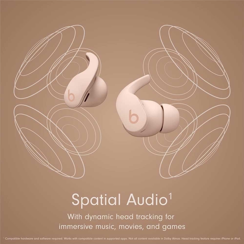 3. پشتیبانی از صدای فضایی: Beats Fit Pro از صدای فضایی با ردیابی سر پویا پشتیبانی می کند. این ویژگی از ژیروسکوپ و شتاب سنج برای تنظیم صدا در حین چرخاندن سر استفاده می کند و یک تجربه صوتی چند بعدی ایجاد می کند.