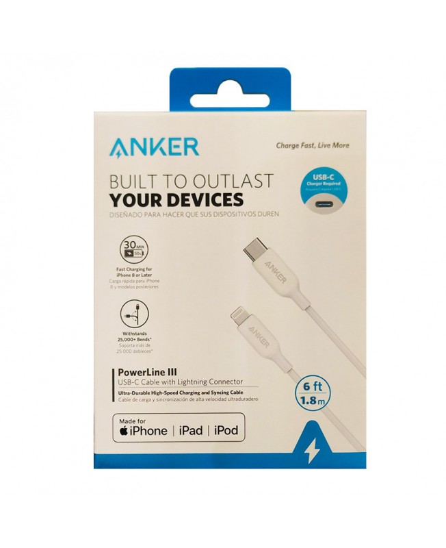 کابل تبدیل USB-C به لایتنینگ انکر 1.8 متری ANKER PowerLine III A8833