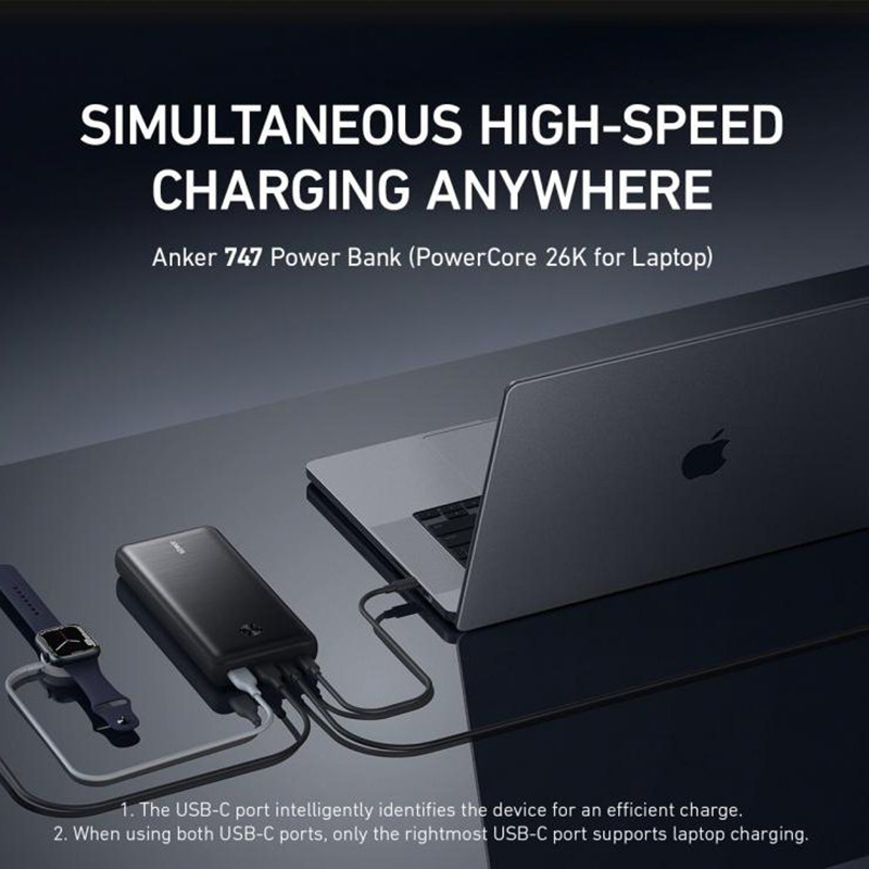 داشتن شارژر همراه مناسب می تواند در بسیاری از شرایط خصوصا در مکان هایی که امکان استفاده از شارژر های دیواری ممکن نباشد به کمک ما بیاید، به همین منظور انکر با تولید پاوربانک A1291 نیاز کاربران را برطرف کرده است. این محصول دارای ظرفیت 26000 میلی آمپر ساعت بوده و 4 درگاه ورودی USB-C و USB داشته که شارژ کردن مورد استفاده قرار می گیرد. از ویژگی های بارز این پاوربانک می توان به توان فق العاده بالای 87 واتی آن ، صفحه نمایش و ظرفیت بالای آن اشاره کرد.