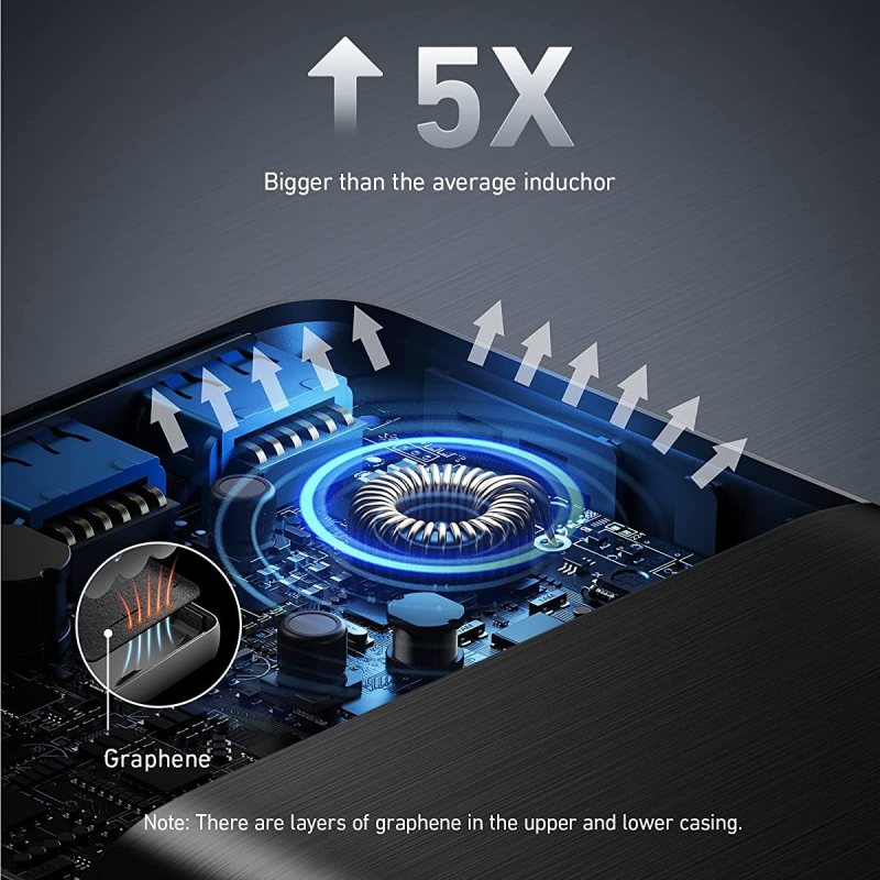 پاوربانک ANKER PowerCore IIIC ساخته شده از متریال با کیفیت پلاستیک ساخته شده است و بیشینه توان خروجی آن 87 وات می باشد که اگر بخواهیم به صورت دقیق بررسی کنیم  پورت USB-C آن شامل : 5V=3A | 9V=3A | 15V=3A | 20V=4.35A و پورت USB-A آن شامل : 5V=3A | 9V=2A | 12V=1.5A می باشد که با این وجود شما با استفاده از این پاوربانک حتی قادر به شارژ لپ تاپ خود نظیر مک بوک خود شوید.